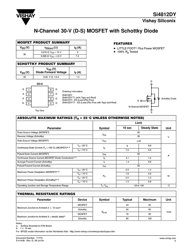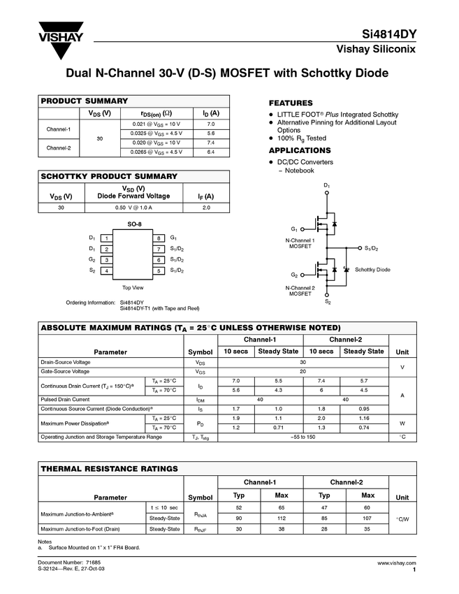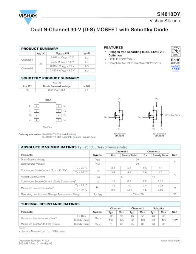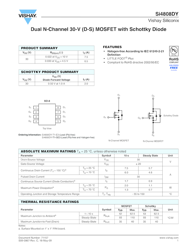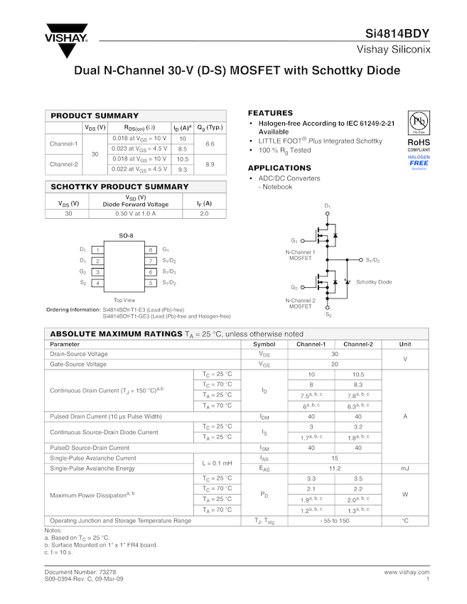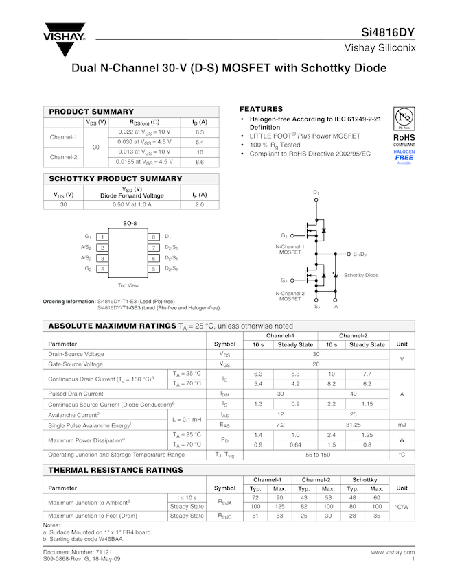 Dual N-Channel 30-V (D-S) MOSFET with Schottky Diode