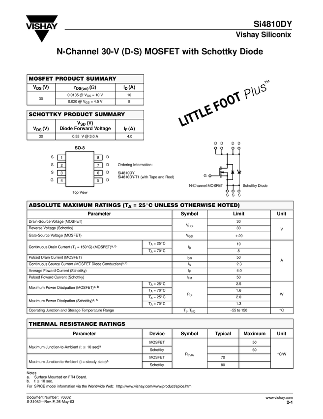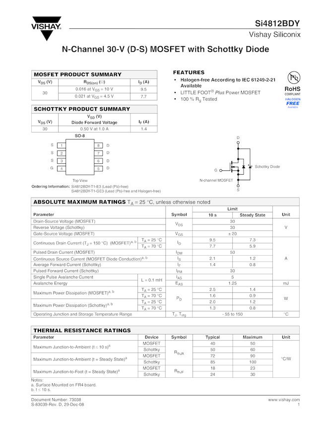 N-Channel, 30-V (D-S) Rated MOSFET + Schottky Diode