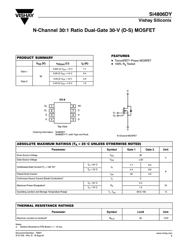 N-Channel 30:1 Ratio Dual-Gate 30-V (D-S) MOSFET
