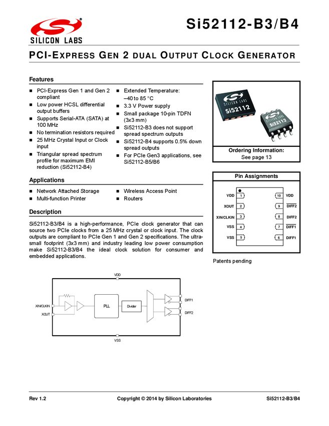 PLL Clock Generator Single 100MHz 10-Pin TDFN T/R