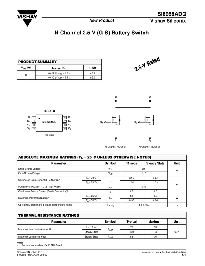 Dual N-Channel 2.5-V (D-S) Battery Switch