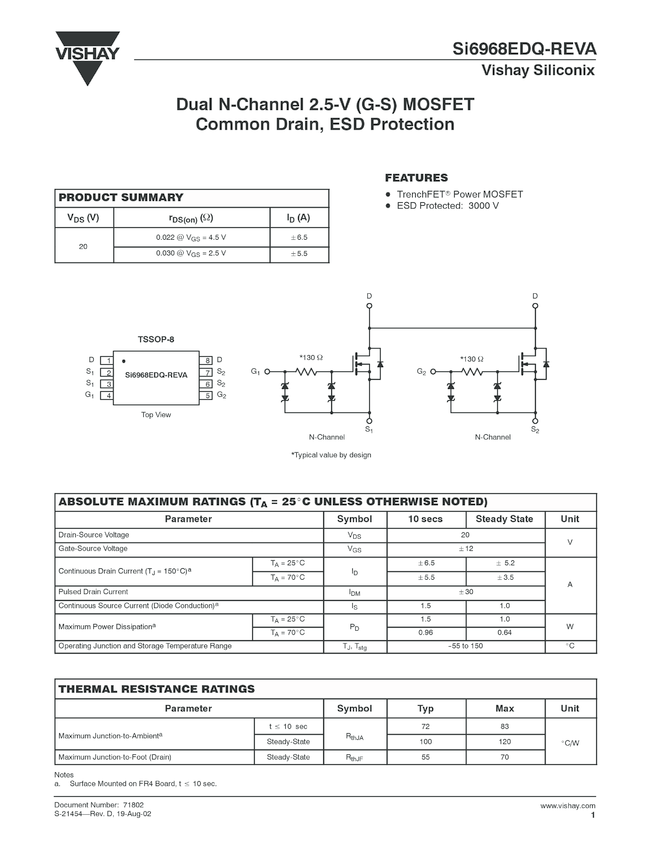 'Dual N-Channel 2.5-V (G-S) MOSFET Common Drain, ESD Protection'