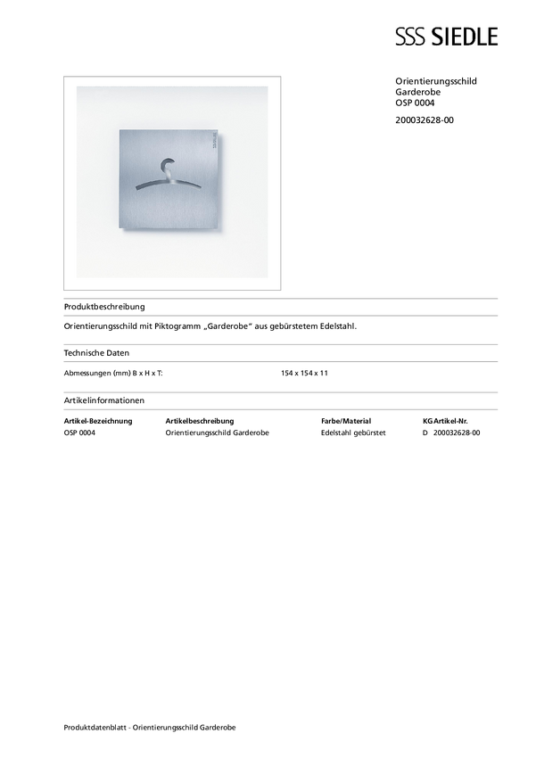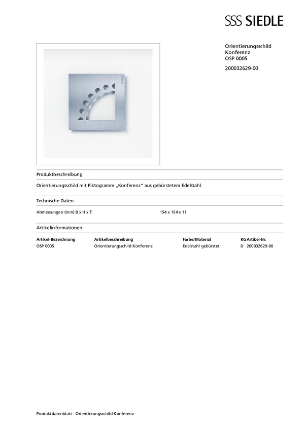 Tabliczka informacyjne Siedle OSP 0004 200032628-00, 1 szt.