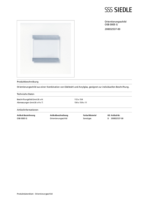 Tabliczka informacyjne Siedle OSP 0011 200032636-00, 1 szt.
