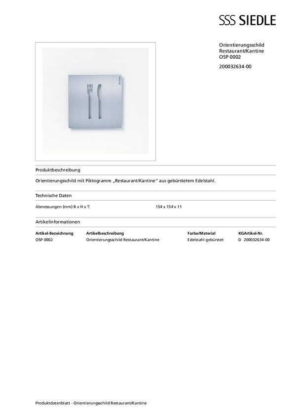 Tabliczka informacyjne Siedle OSP 0002 200032634-00, 1 szt.