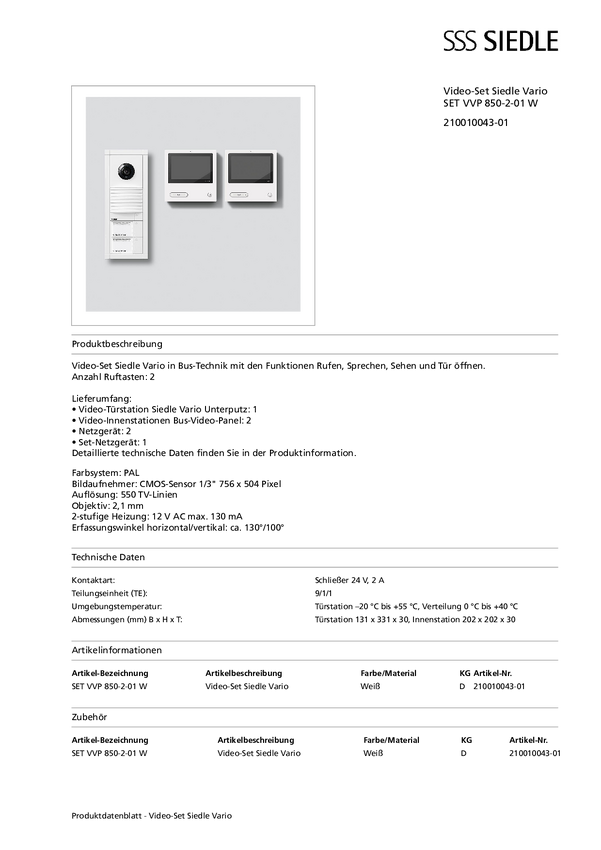Siedle SET VVP 850-2-01 W Domofon biały