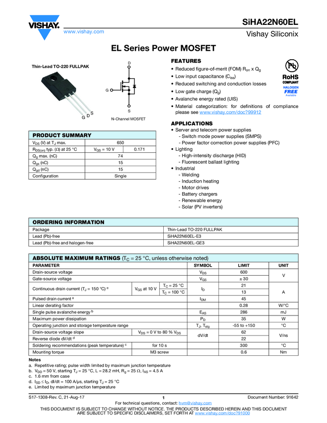 SiHA22N60AEL