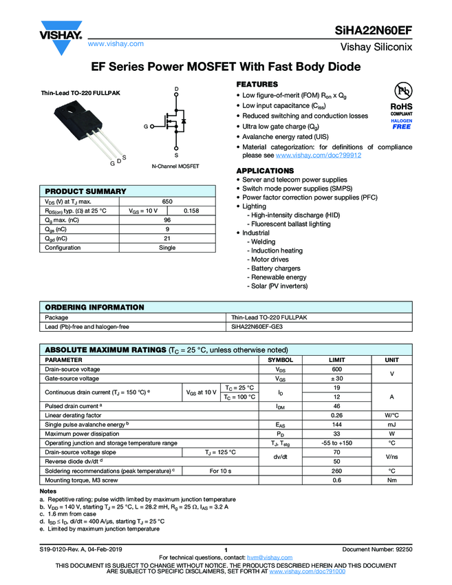 SiHA22N60EF