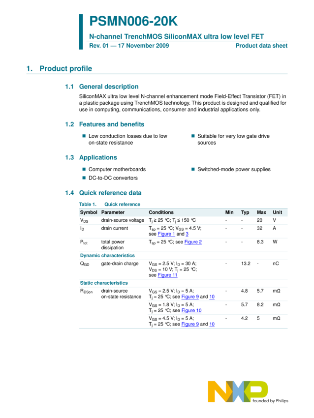 N-channel TrenchMOS SiliconMAX ultra low level FET