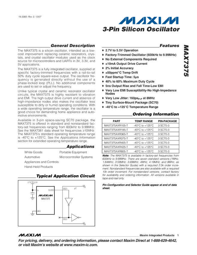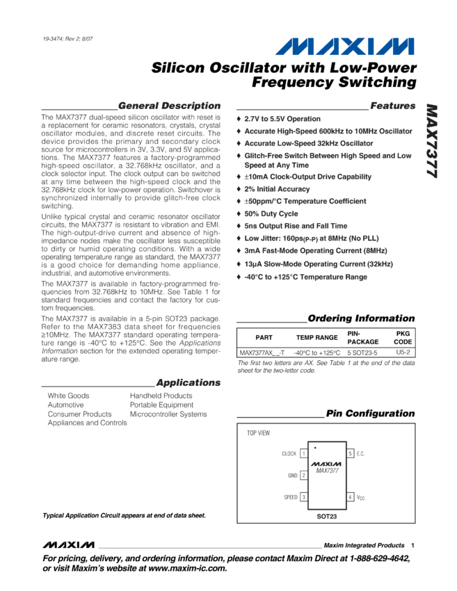 MAX7377 Silicon Oscillator with Low-Power Frequency Switching