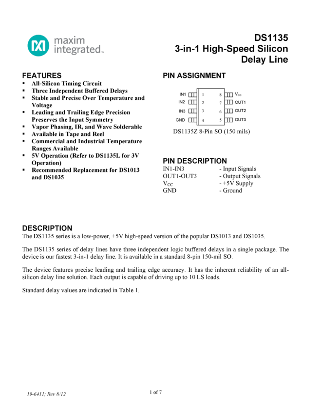 DS1135 3-in-1 High-Speed Silicon Delay Line