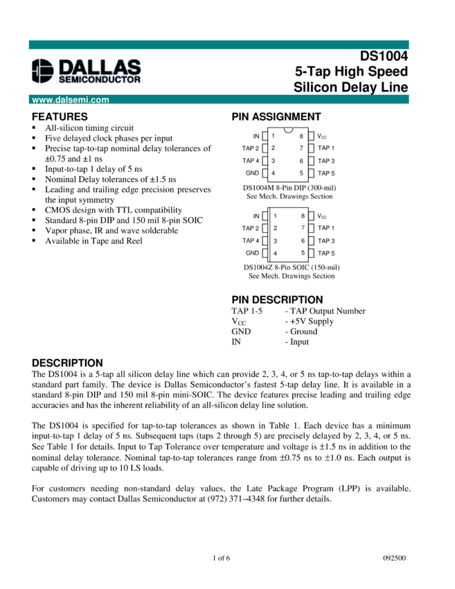 DS1004 5-Tap High-Speed Silicon Delay Line