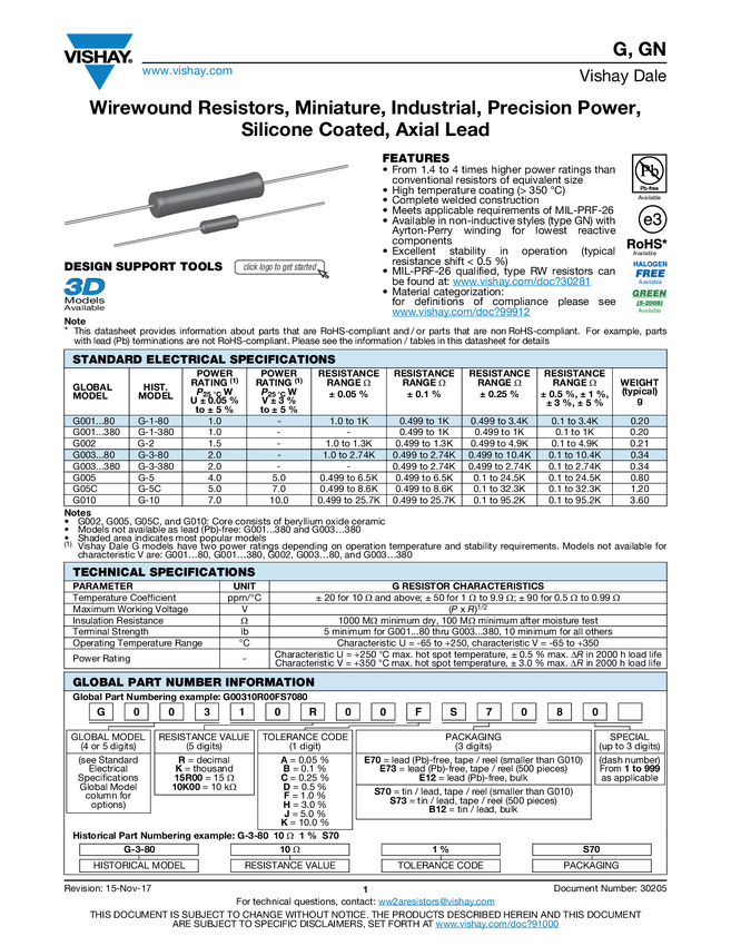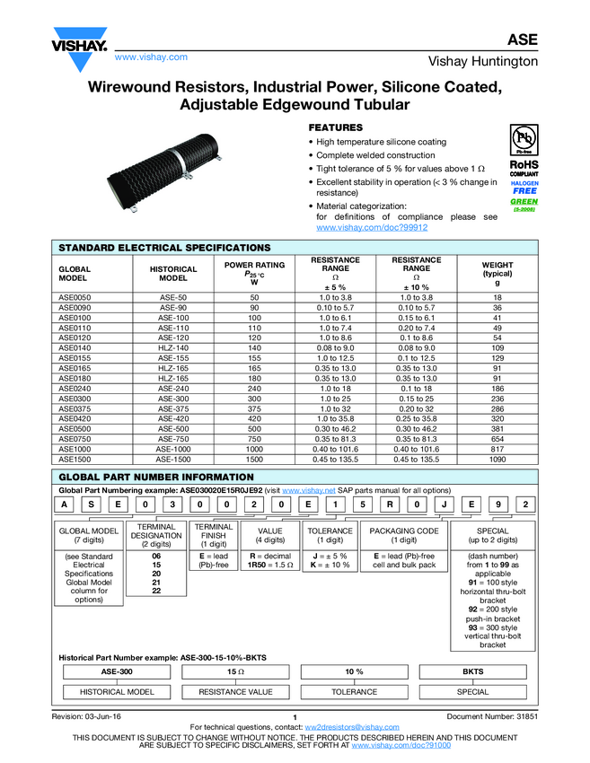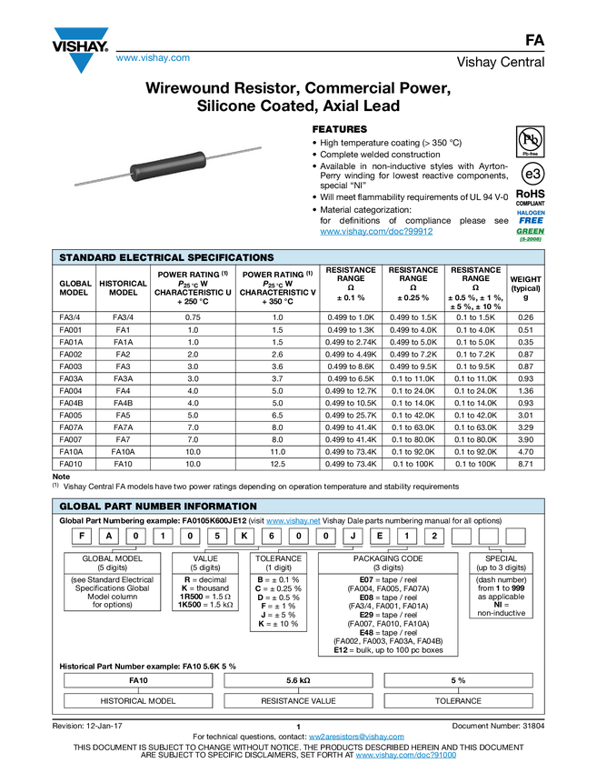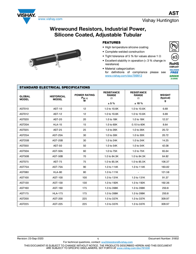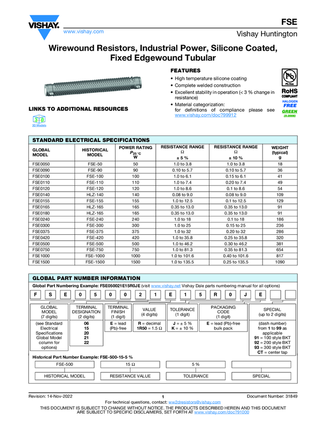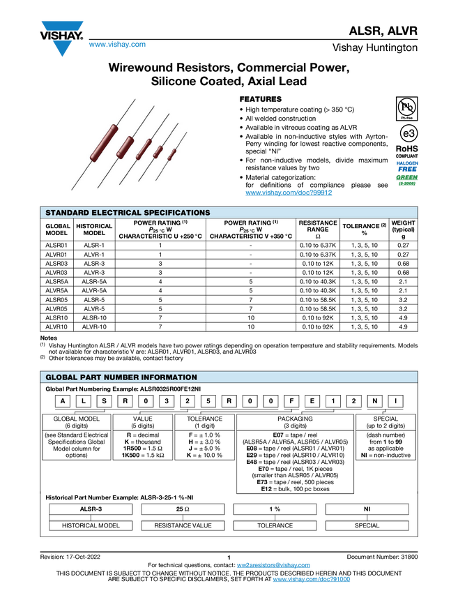 Wirewound Resistors, Industrial Power, Silicone Coated, Fixed Edgewound Tubular