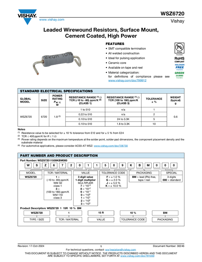 Leaded Wirewound Resistors, Surface Mount, Silicone or Cement Coated, High Power