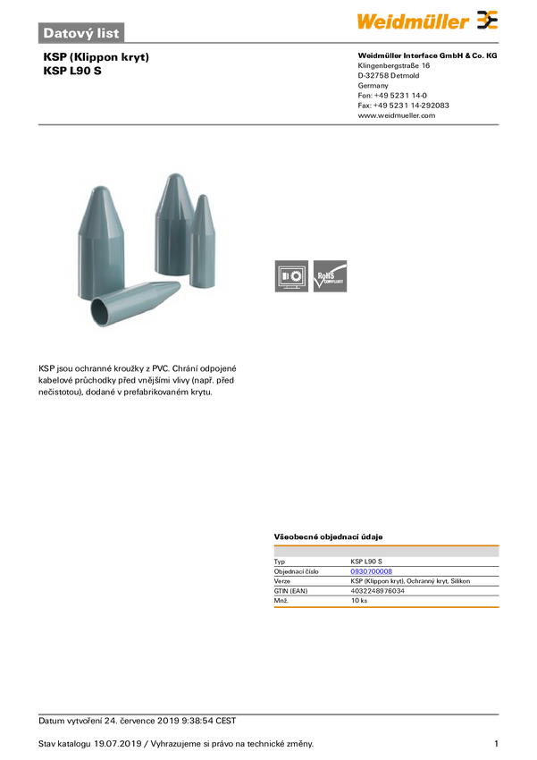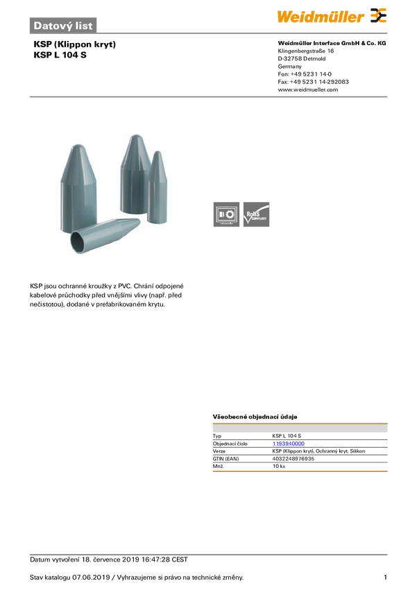 Weidmüller 1193940000 KSP L 104 S Nasadka ochronna silikon czarny (ral 9005) 10 szt.