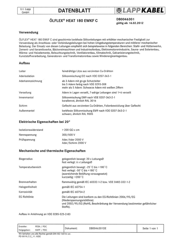 Przewód silikonowy OLFLEX® Heat 180 EWKF ÖLFLEX HEAT 180 EWKF C 4G6 LAPP 463313/500 czarny 500 m