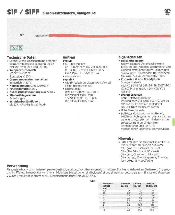 Przewód; SiHF; Cu; linka; cynowana; 4x0,5mm2; kauczuk silikonowy; -60+180*C; 300/500V; brązowo-czerwony; 22991; HELUKABEL; RoHS