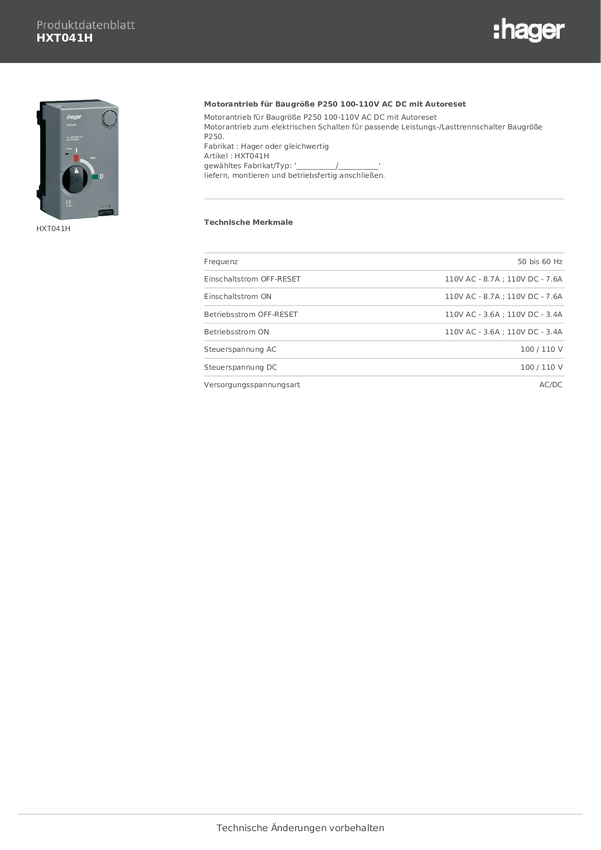 Hager HXT041H Napęd silnikowy 110 V 1 szt.