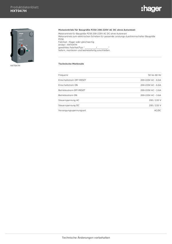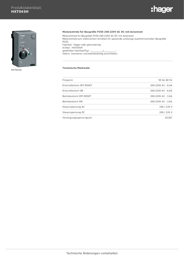 Hager HXT045H Napęd silnikowy 220 V 1 szt.