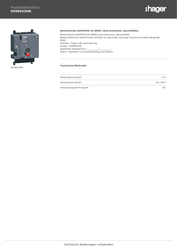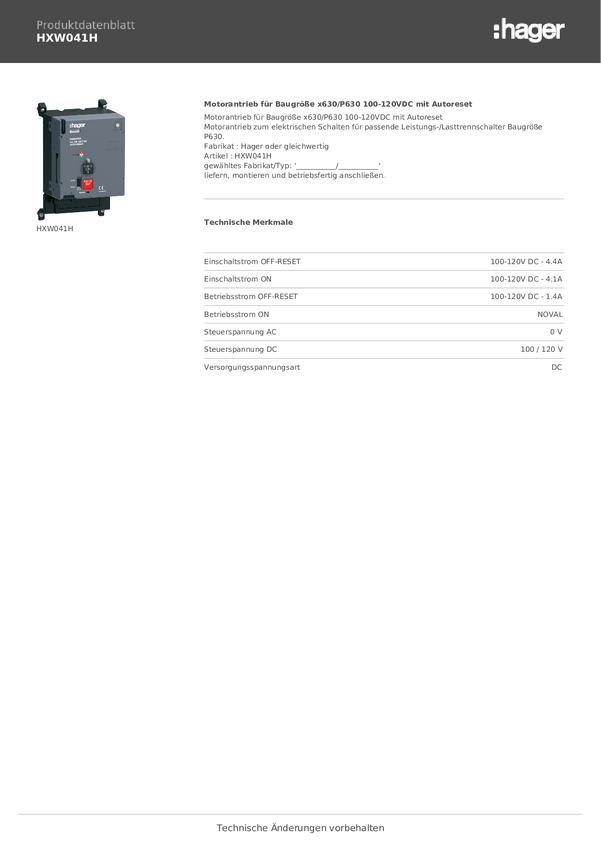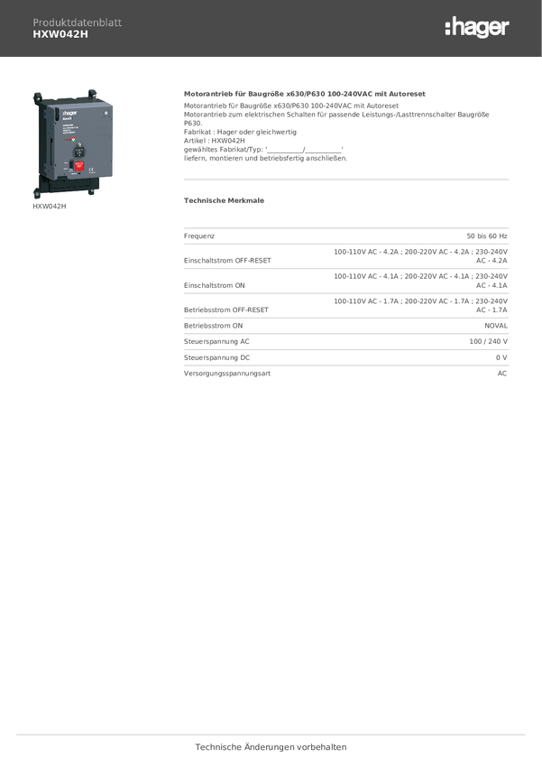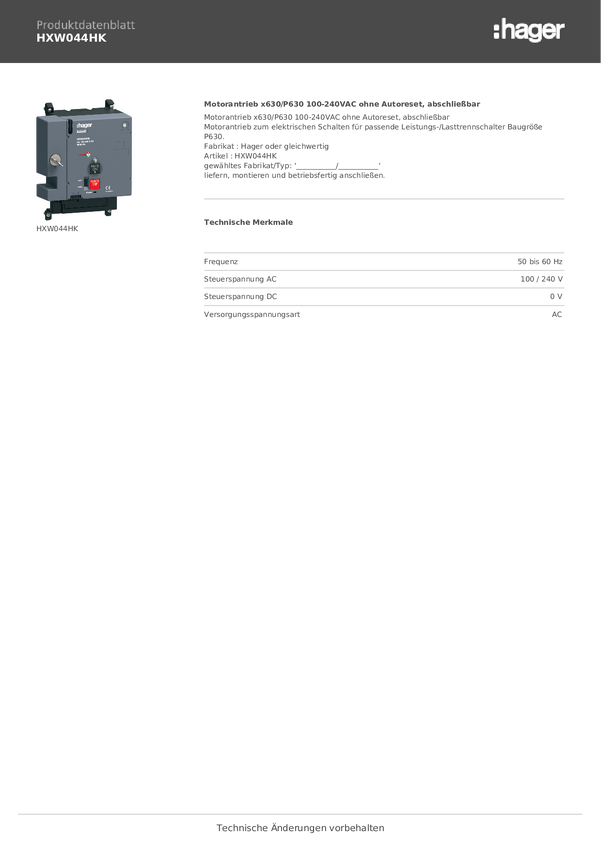 Hager HXW042HK Napęd silnikowy 110 V, 240 V 1 szt.