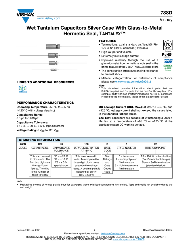 Wet Tantalum Capacitors Silver Case TANTALEX™ Capacitors Hermetically-Sealed