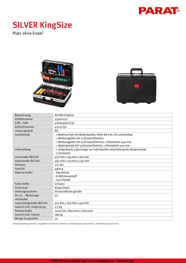 Walizka narzędziowa bez wyposażenia Parat SILVER KingSize XL 535000171, (S x W x G) 490 x 400 x 215 mm