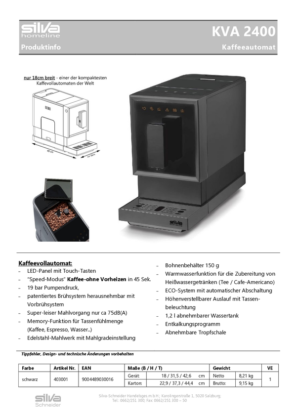 Silva Homeline KVA 2400 403001 Ekspres do kawy automatyczny czarny