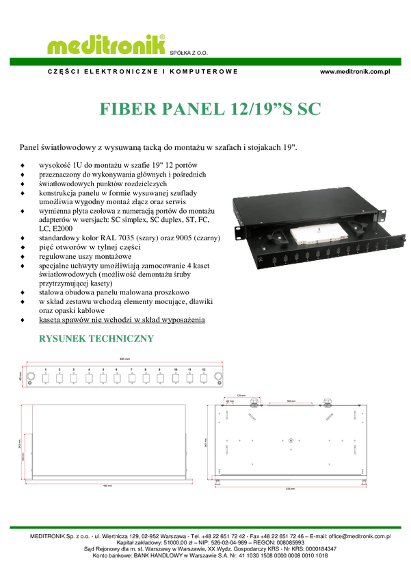 Przełącznica światłowodowa 12xSC simplex/12xLC duplex 19" 1U czarna