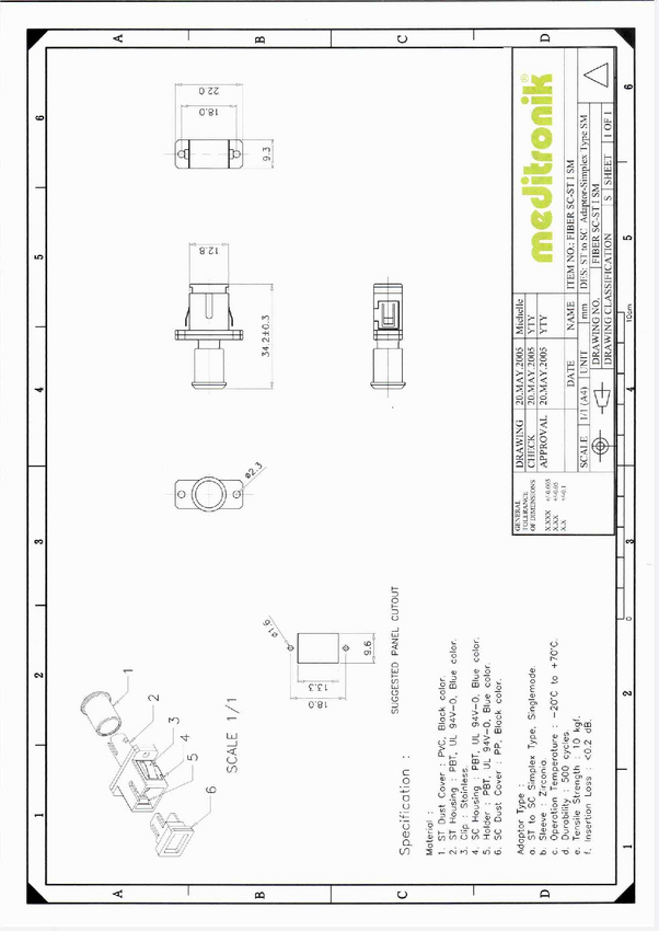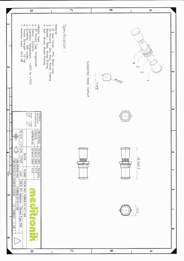 Adapter światłowodowy ST-ST simplex SM Flangeless