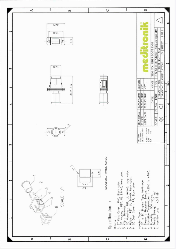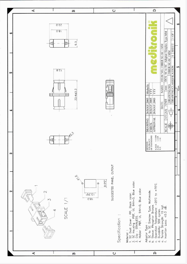 Adapter światłowodowy SC-SC simplex SM Flangeless