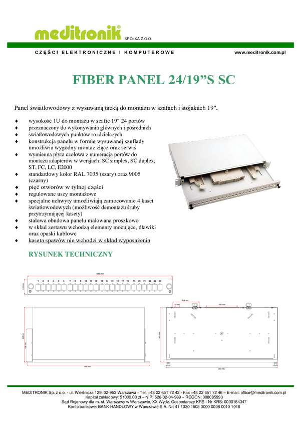 Przełącznica światłowodowa 19" 1U 24xSC simplex/24xLC duplex szara