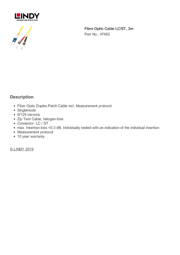 LINDY 47462 światłowodowe do światłowodów kabel 3.00 m Singlemode OS2