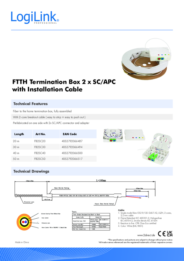 LogiLink FB2SC40 światłowodowe do światłowodów kabel 40 m biały Singlemode OS2