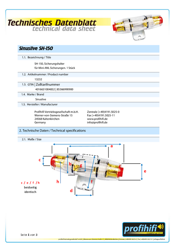 Uchwyt bezpiecznika Car HiFi, mini Sinuslive SH-150 Pasuje do: 80 A