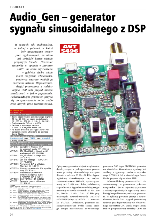 AVT5496 Generator sygnału sinusoidalnego DSP Audio_Gen