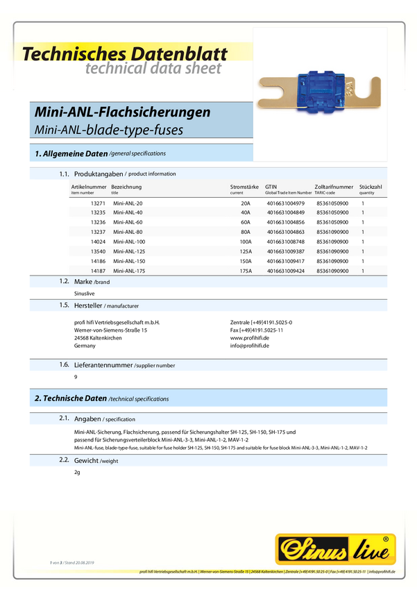 Bezpiecznik Sinuslive z automatycznym ogranicznikiem szumów(ANL), 150A