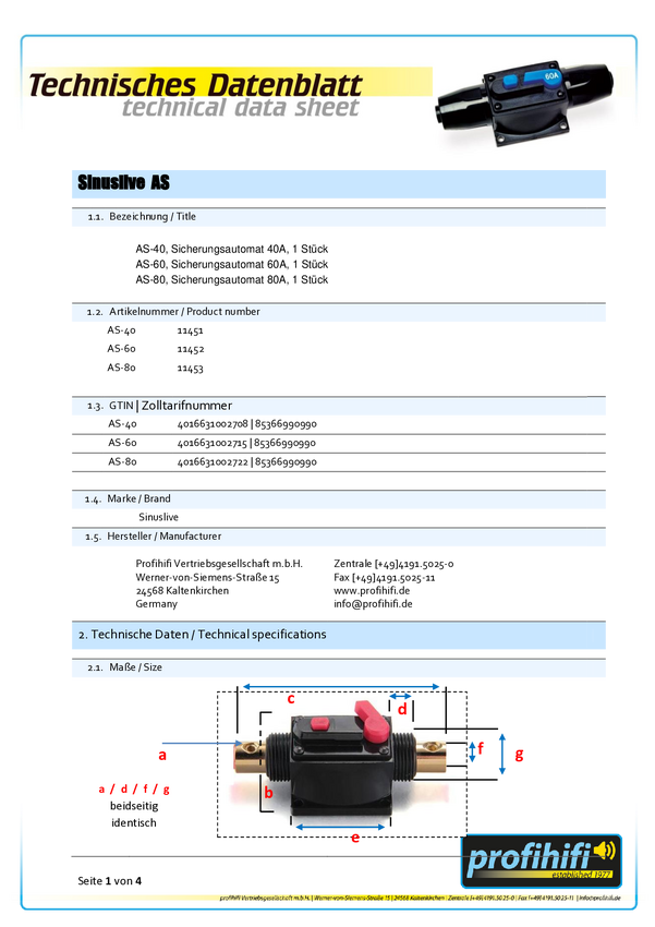 Bezpiecznik automatyczny SinusLive 40 A, przewody do 25 mm2.
