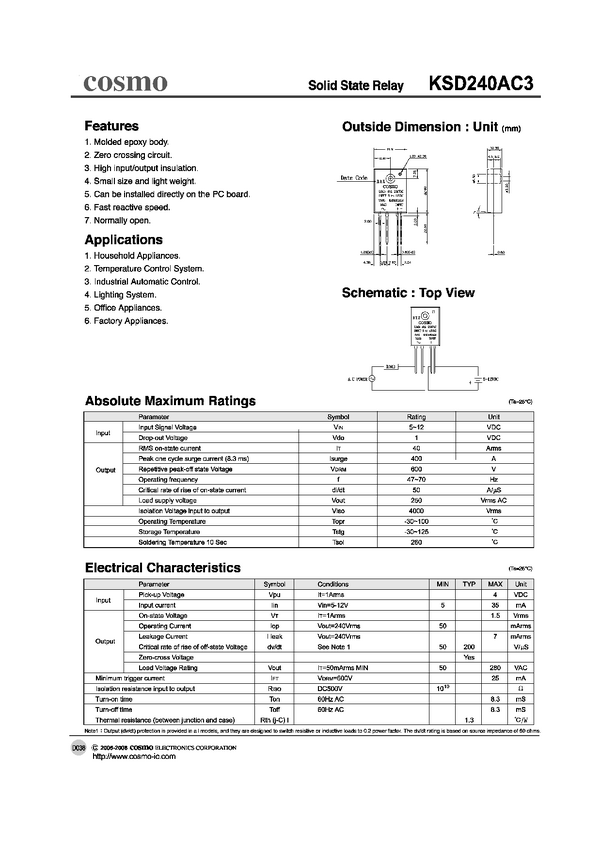 SSR+ZCD+RC 4KV 600V 8A UL SIP4 8mA