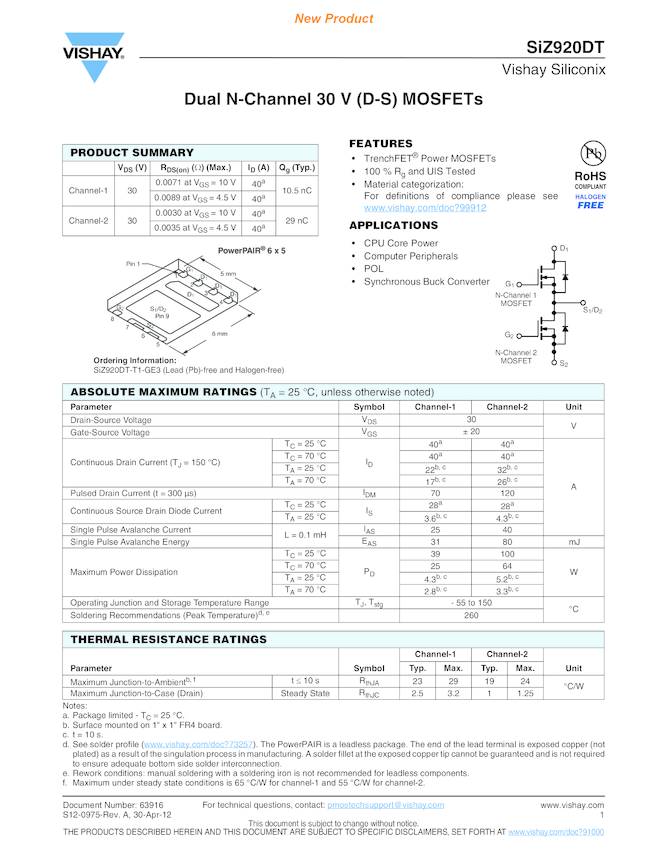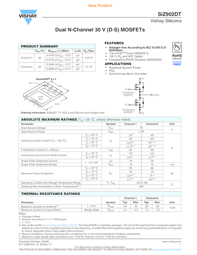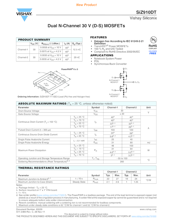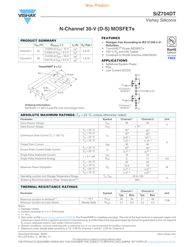 Dual N-Channel 30 V (D-S) MOSFETs with Schottky Diode