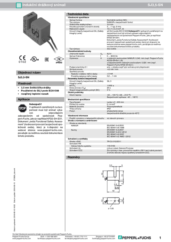 Pepperl+Fuchs Czujnik indukcyjny NAMUR SJ3,5-H x2xGxxxD