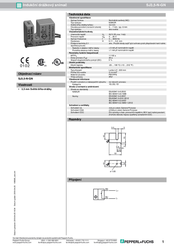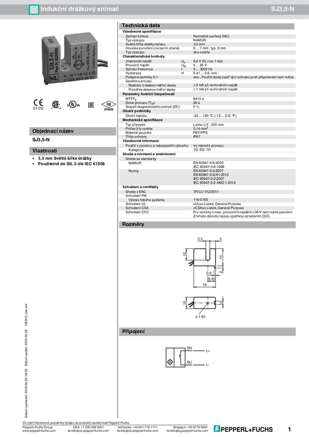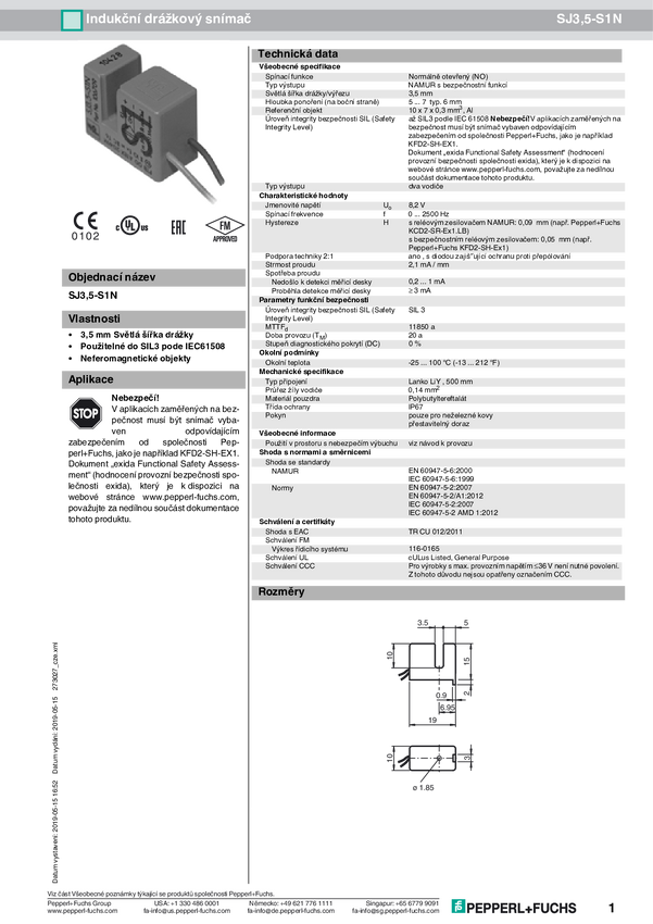 Pepperl+Fuchs Czujnik indukcyjny NAMUR SJ3,5-SN 123G1xxD
