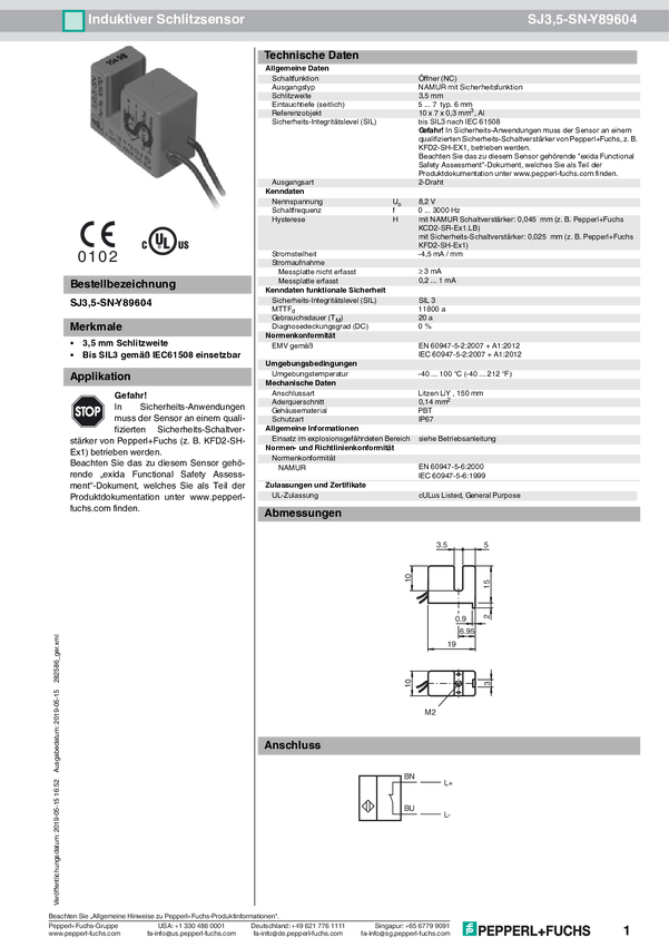Pepperl+Fuchs Czujnik indukcyjny NAMUR SJ3,5-SN-Y89604