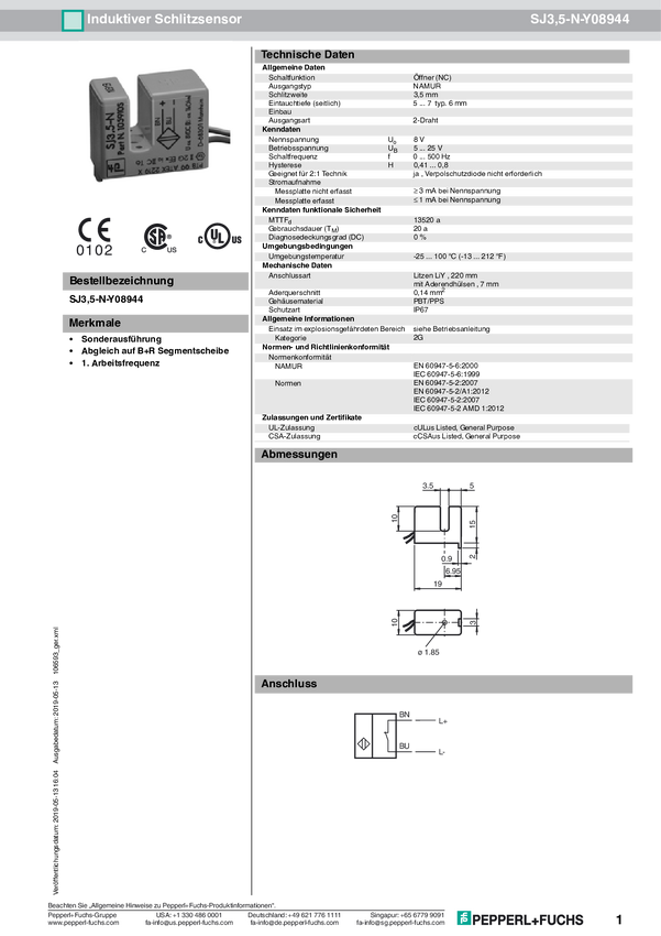 Pepperl+Fuchs Czujnik indukcyjny NAMUR SJ3,5-N-Y08944