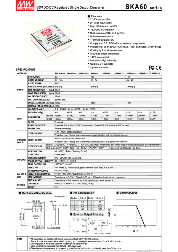 Module DC-DC 1-OUT 5V 12A 60W 8-PIN DIP