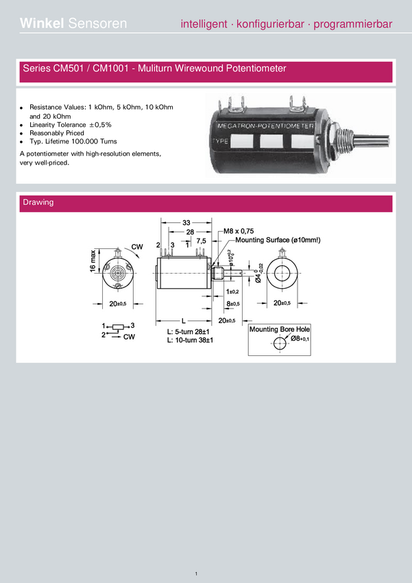 Potencjometr 10 obrotowy Megatron średnica ośki 4 mm; Rez 10 kohm; drutowy; bushing; lin 0,25%; tol.5%; średnica 20mm; dł.42 mm; trwałość 500.000 obrotów; moc 2W zamiennik trw.1 mil ale 1,5W,z ośką 3mm PM12HPC-10S-10k+skal