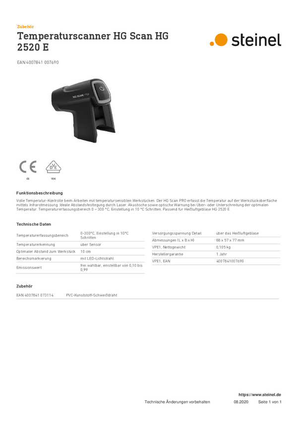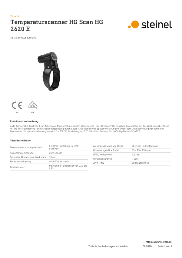 Skaner temperatury Steinel 007553 Pasuje do marki (opalarki) Steinel HG 2620 E