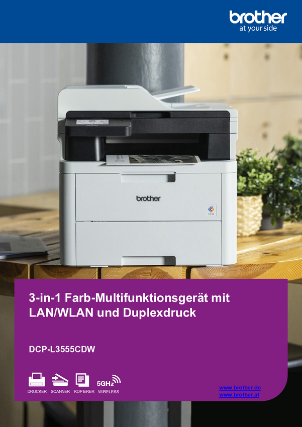 Brother DCP-L3555CDW Drukarka wielofunkcyjna LED druk kolorowy A4 drukowanie, skanowanie, kopiowanie Duplex, USB, WLAN,