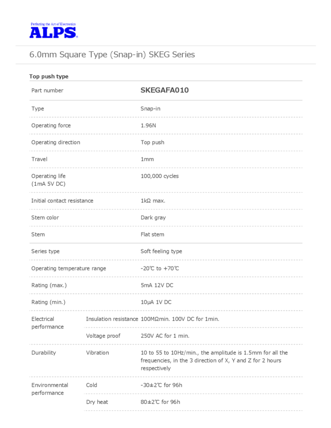 Switch Tactile N.O. SPST Button PC Pins 0.005A 12VDC 1.96N Thru-Hole Bulk