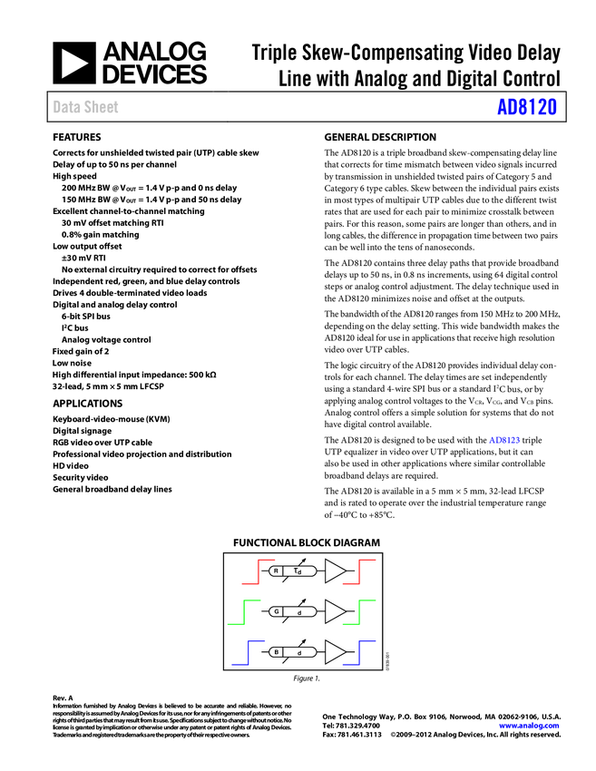 Triple Skew-Compensating Video Delay Line with Analog and Digital Control