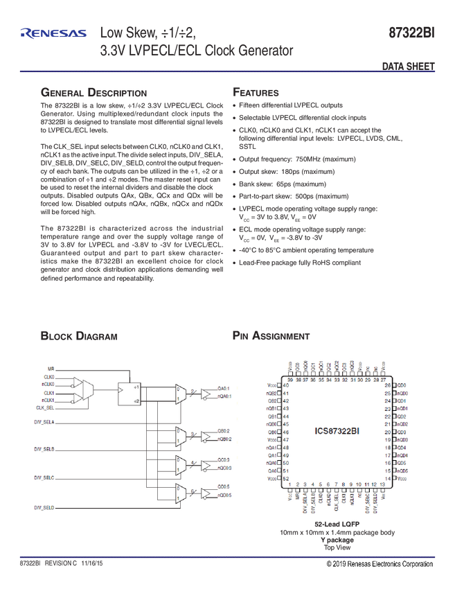 Low Skew,÷2,÷4,÷8 Differential-to-LVPECL Clock Divider
